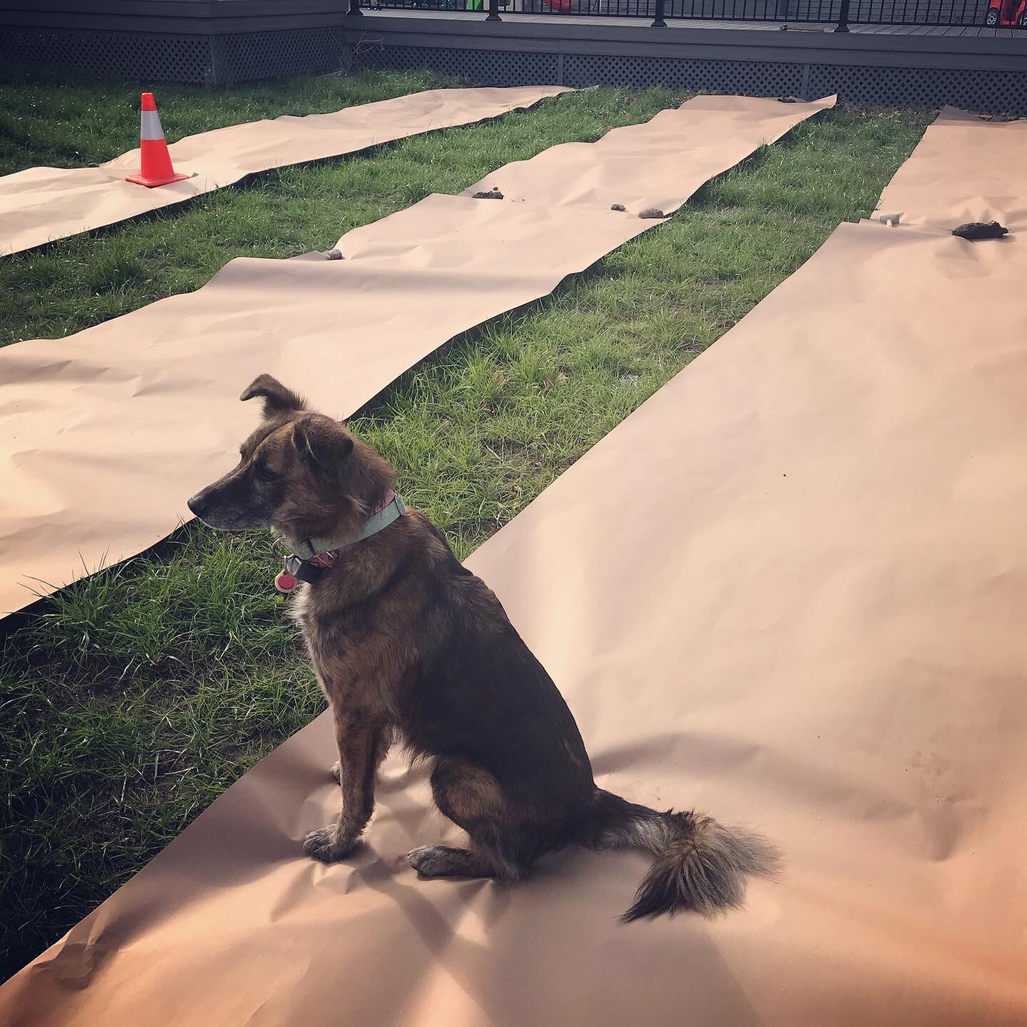 We love dogs! We have one, in fact :). Her name is “Chilidog”. She’d love to meet you! Here she is helping to prep some no-till beds.