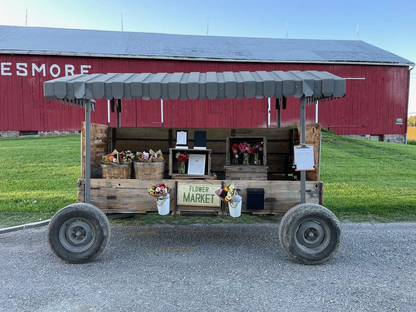 The flower cart will be open to the public on most weekends and will be parked in front of our big red barn. The address is 3052 Highway 2, Bowmanville, ON.